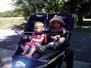 The little ones, Avery and Caroline, at Dutch Wonderland. They were not tall enough to ride the slides, which all the big kids loved.